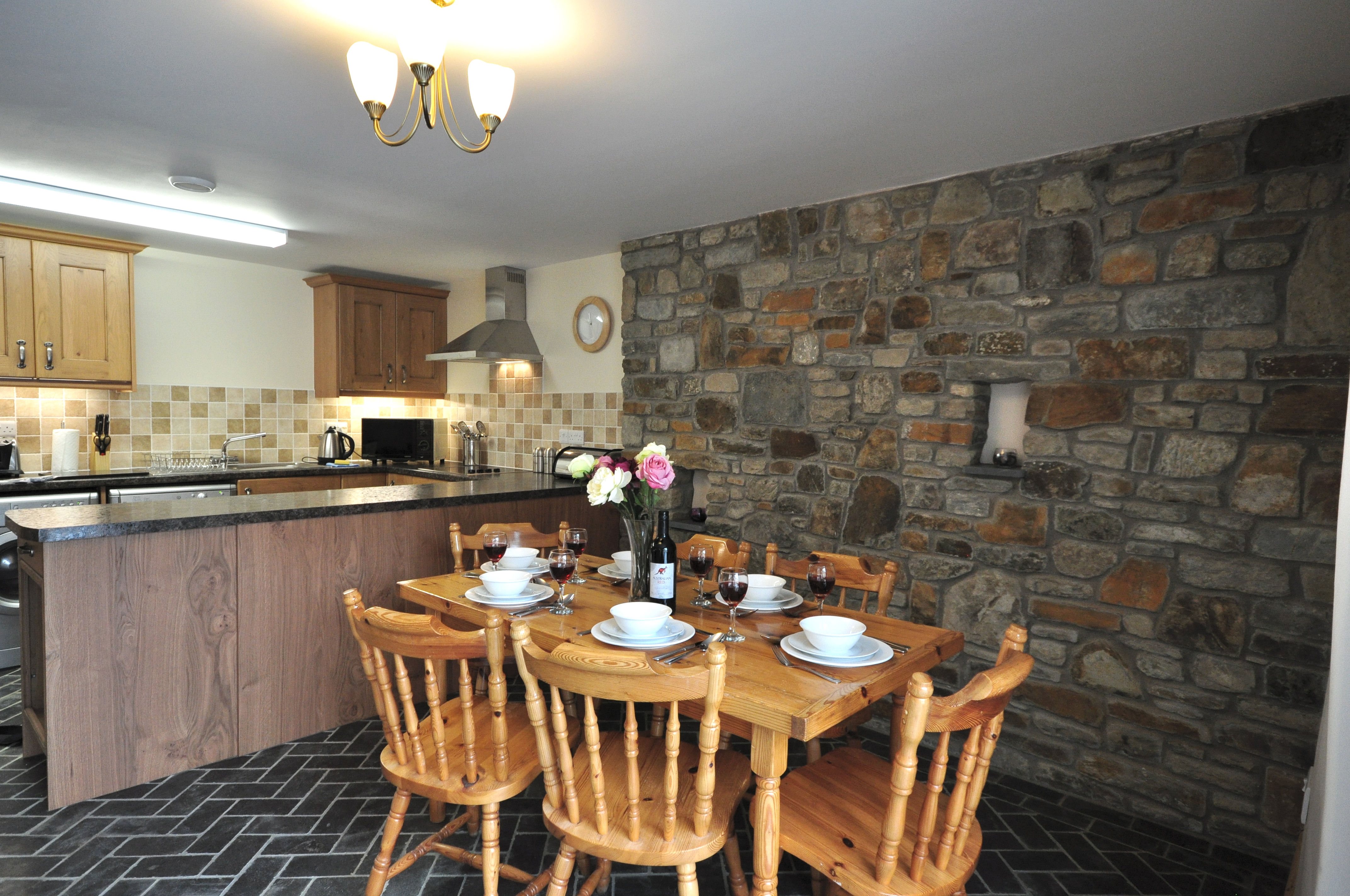 Kitchen/diner: has exposed stone work, oak units, dishwasher, electric cooker and hob, washing machine, fridge/freezer, microwave and many useful extras.