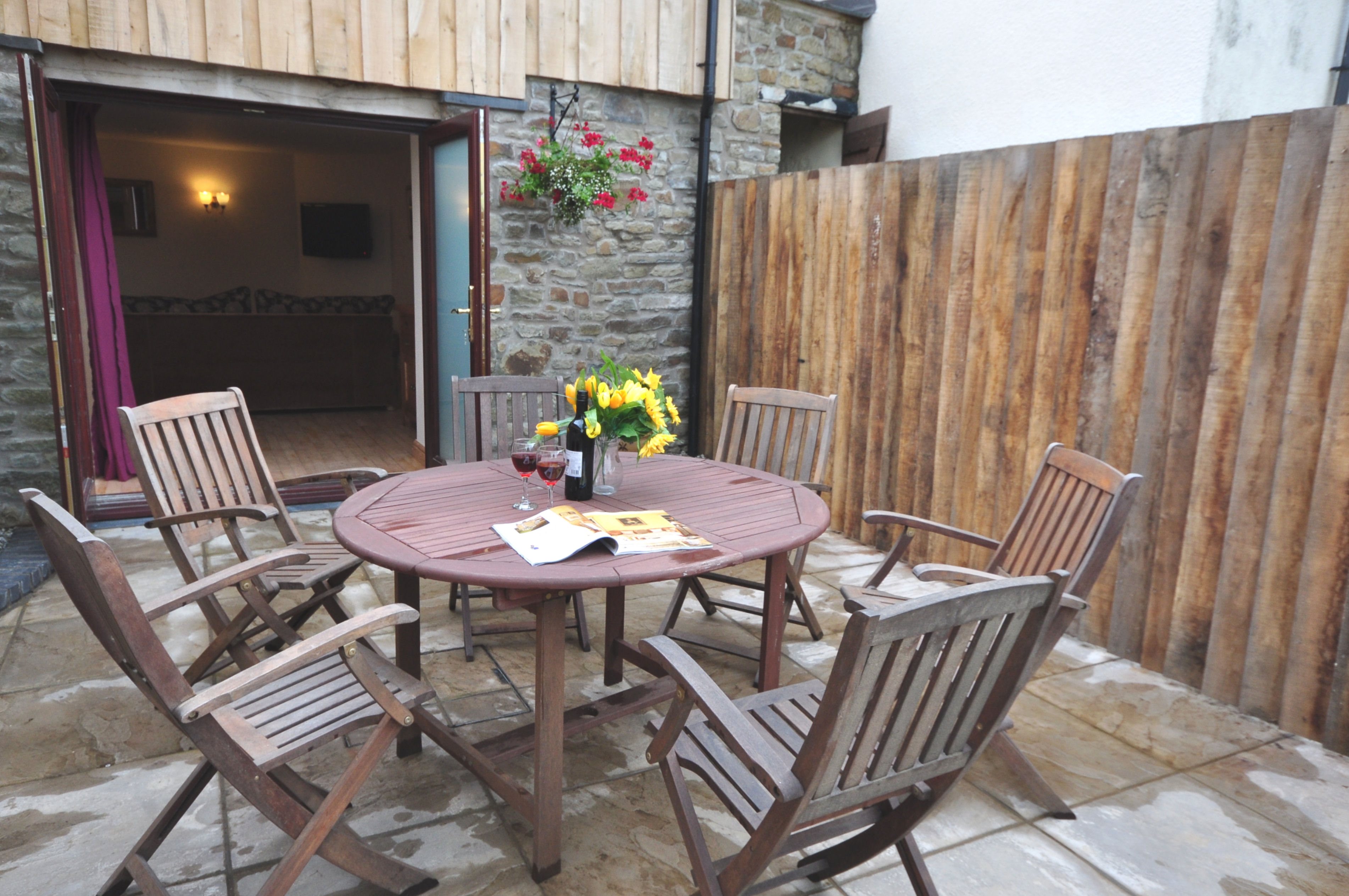 Outside: patio areas at the front and rear of the property, the front patio has outdoor chess/draughts, the rear having garden furniture and BBQ.