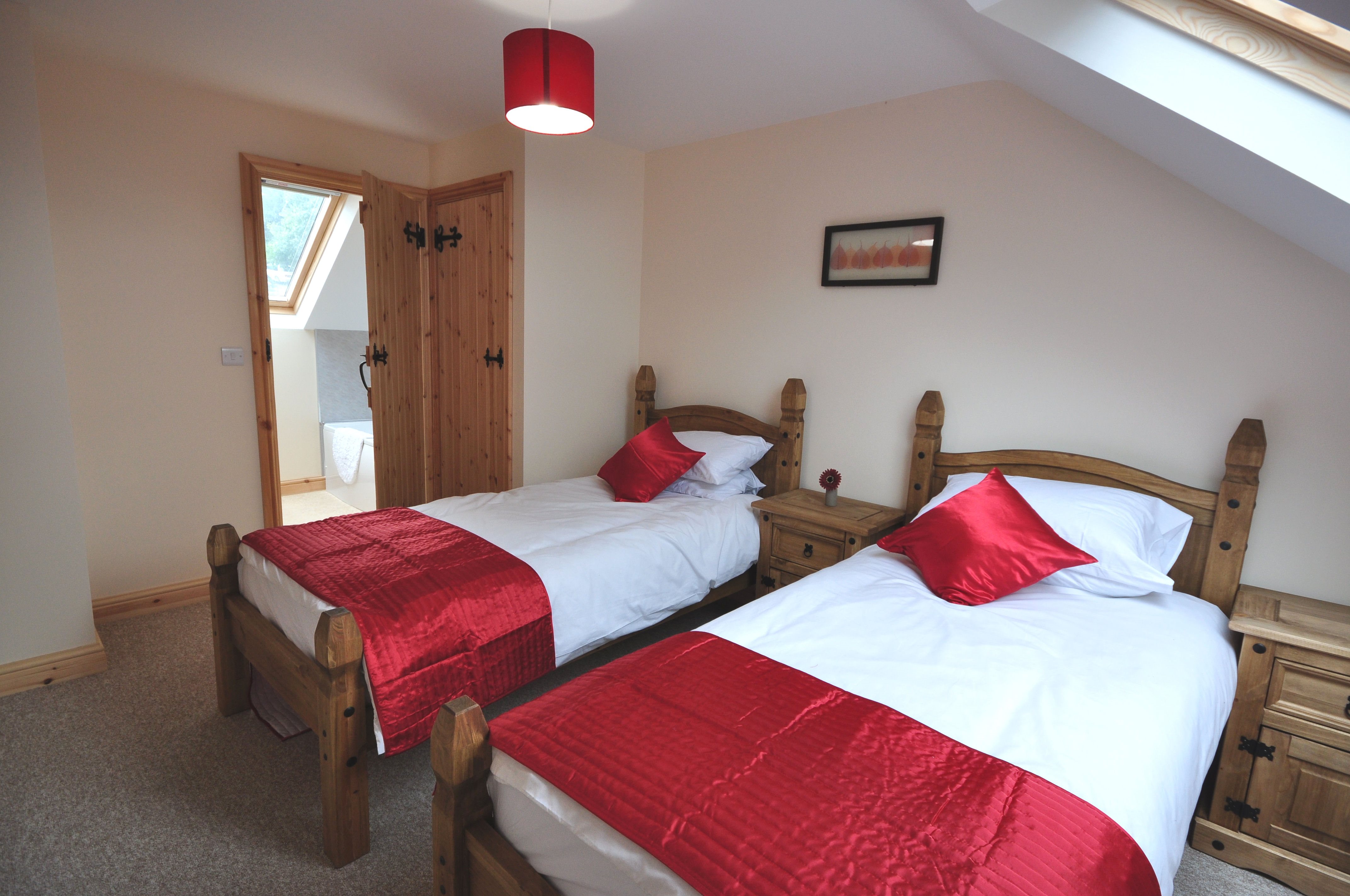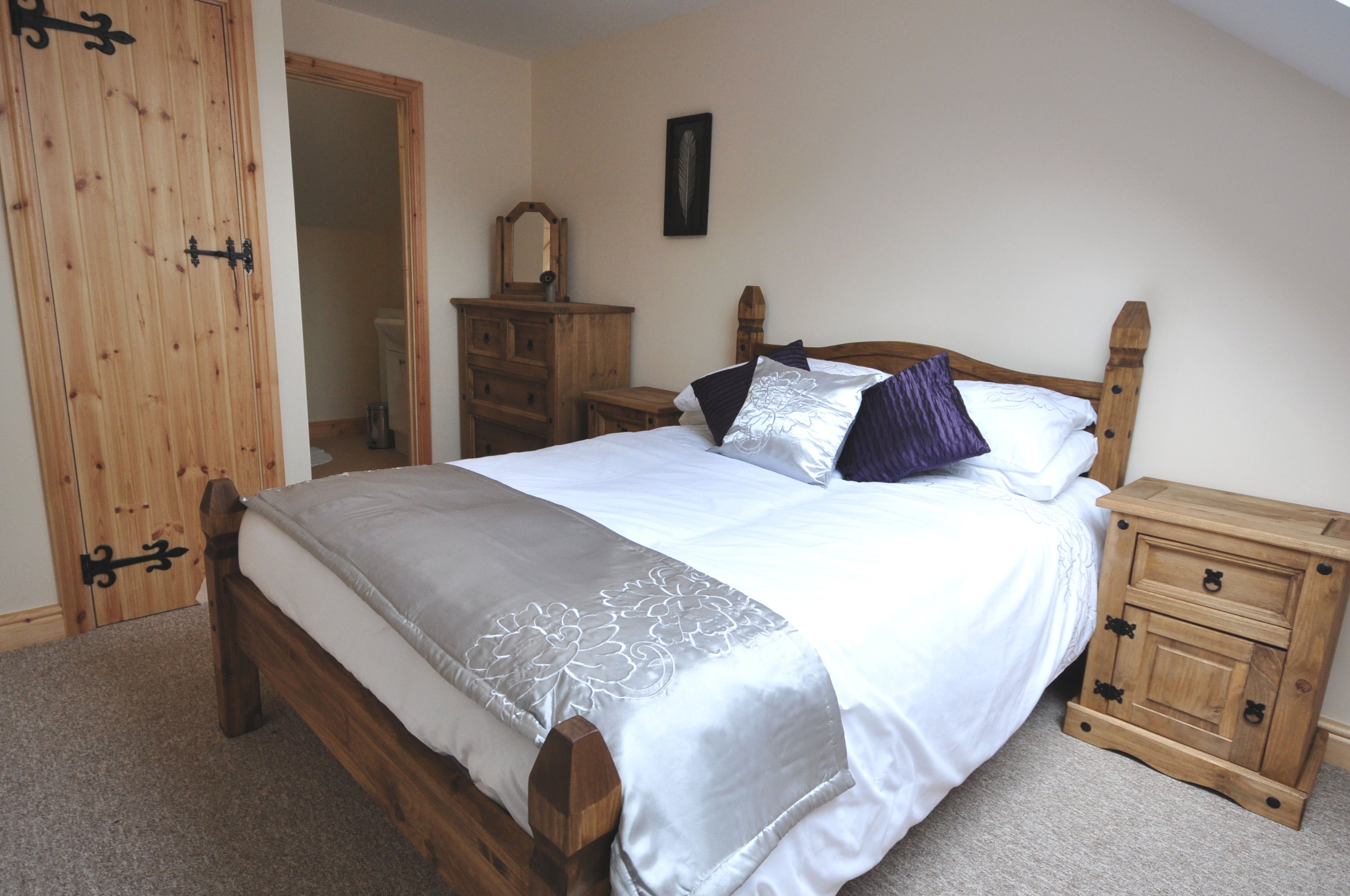 The accommodation offers THREE bedrooms: accessed via an open-tread, winding staircase, 1 double with TV and en-suite bath with shower over, WC. 1 zip-and-link, made up as a twin although on request can zipped together to make a king-size with en-suite bath with shower over and WC and 1 single room.