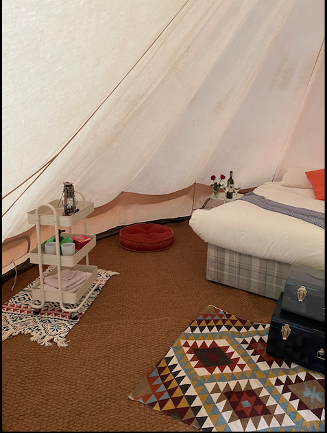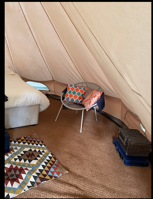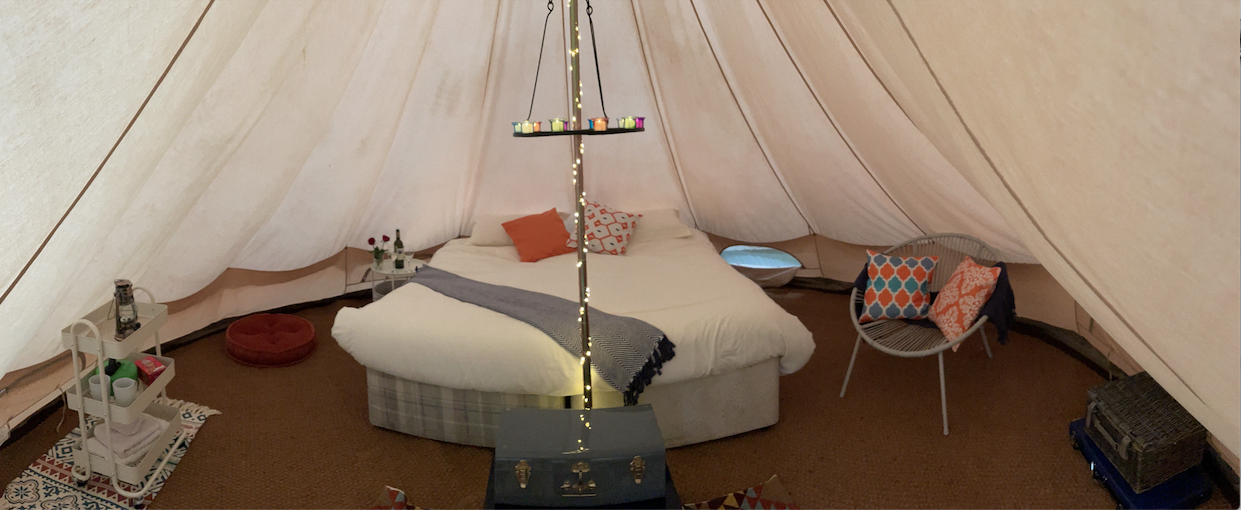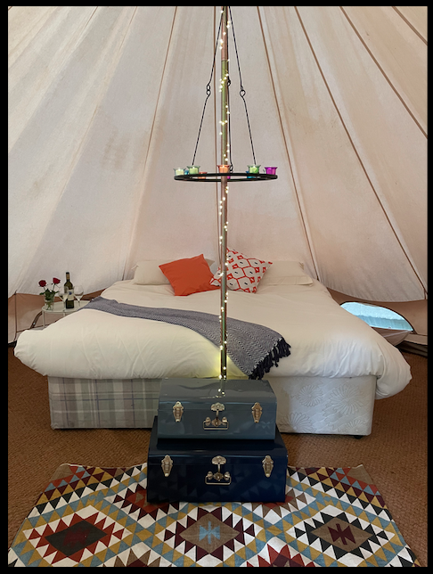 Gorgeous Bell Tent, situated on an ex working farm. This accommodation is suitable for 2 adults, although infants (under 2) could also stay in our travel cot, which is available on request.